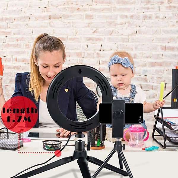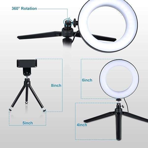 LED Ring Light 6" with Tripod Stand for Desk YouTube Video and Makeup, Mini LED Camera Light with Cell Phone Holder Desktop LED Lamp with 3 Light Modes & 11 Brightness Level (6 inch)