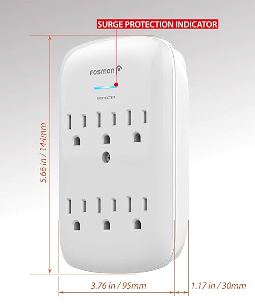 - Fosmon 6 Outlet Wall Mount Surge Protector, 3-Prong Surge Suppression 1200 Joules, 15A 125VAC 60Hz 1875Watts Wall Outlet Adapter, Grounded LED, ETL Listed - White offers reliable performance and quality