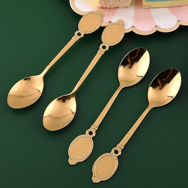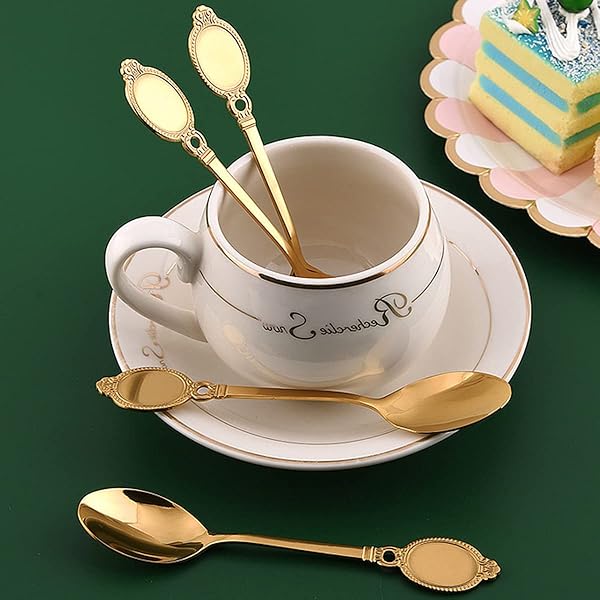 * 6 Pcs Flower Coffee Dessert Spoon Set, Stainless Steel Tableware Creative Teaspoon Coffee Teaspoon Ice-Cream Mixing Stir Bar Ice Tea Spoon, 6 Different Patterns (Gold): high-quality: the total length of the spoon is about 5.2 inches/13.2 cm * Easy to store or carry * Made of high-quality stainless steel * Very durable,without worrying about rust and discoloration * Creative design:Elegant and slender handle