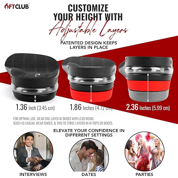 - 6FT Original Advanced Height Increase Insoles 2.36 Inches (6CM) 3 Layer Air Cushion Comfort Support Discreet Elevation Enhancer Boost Shoe Lifts Taller All Day offers reliable performance and quality- Height Options for Hi-Tops 6FT CLUBs 3-layer insoles provide adjustable lift: 1 inch (2.54 cm), 2 inches (5.08 cm), or 2.36 inches (6 cm). Use a single layer for casual shoes with enough ankle support and add more layers for high-top sneakers or boots
