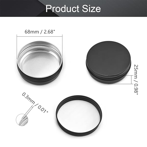 - Othmro 6Pcs 2oz 60ml Round Aluminum Cans Tin Can Screw Lid Top Metal Storage Tins Containers Round Empty Container Cans Kitchen Storage Container for Lip Balm, Crafts, Candles, Candies offers reliable performance and quality- BASIC INFORMATIONCapacity: 60g/60ml/2 oz; Material: Aluminum Alloy- HIGH QUALITYMade from Aluminum alloy, can be recycled or re-used making them really eco-friendly