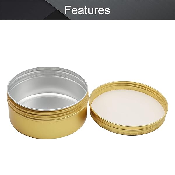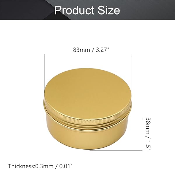 - Othmro 6Pcs 5.1oz Metal Round Tins Aluminum Tin Cans Jar Refillable Containers 150ml Tin Cans Tin Bottles Containers with Screw Lid for Salve Spices Lip Balm Tea Candies Gold 8338mm offers reliable performance and quality- BASIC INFORMATIONCapacity: 150g/150ml/5 oz; Dimensions: 83380.3mm (DxHxT); Material: Aluminum Alloy- HIGH QUALITYMade from Aluminum alloy, can be recycled or re-used making them really eco-friendly