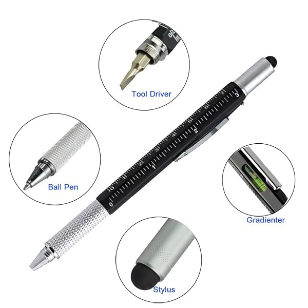 - Stylus Pen, 7-in-1 Multi-Tool Pen Touchscreen Stylus, Ballpoint Pen, Ruler, Level, Phillips Screwdriver and Flathead (3 Pack Black) offers reliable performance and quality- Multifunctional: Ballpoint, Ruler, Touch-Screen Pen, Levelgauge, Phone Holder, Corkscrew, Phillips Screwdriver and A Flat Head are all in one- Exquisite: Metal Shell Fabrication makes a good visual effect and it is suitable for peoples gift