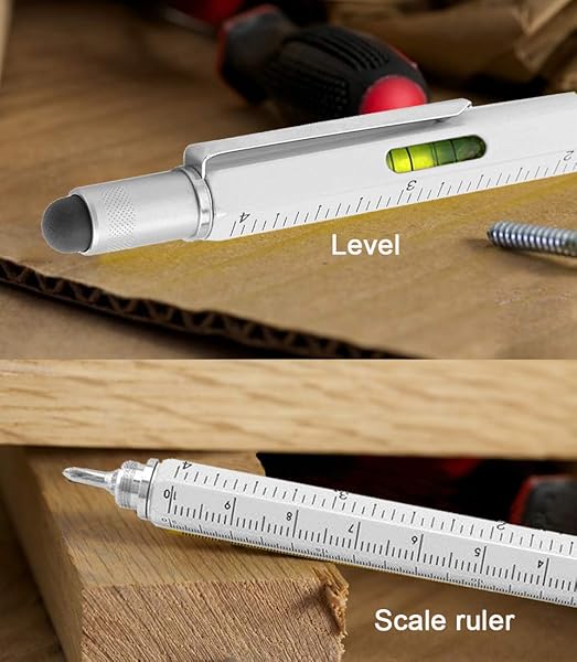 - Stylus Pen, 7-in-1 Multi-Tool Pen Touchscreen Stylus, Ballpoint Pen, Ruler, Level, Phillips Screwdriver and Flathead (3 Pack Silver) offers reliable performance and quality- Multifunctional: Ballpoint, Ruler, Touch-Screen Pen, Levelgauge, Phone Holder, Corkscrew, Phillips Screwdriver and A Flat Head are all in one- Exquisite: Metal Shell Fabrication makes a good visual effect and it is suitable for peoples gift
