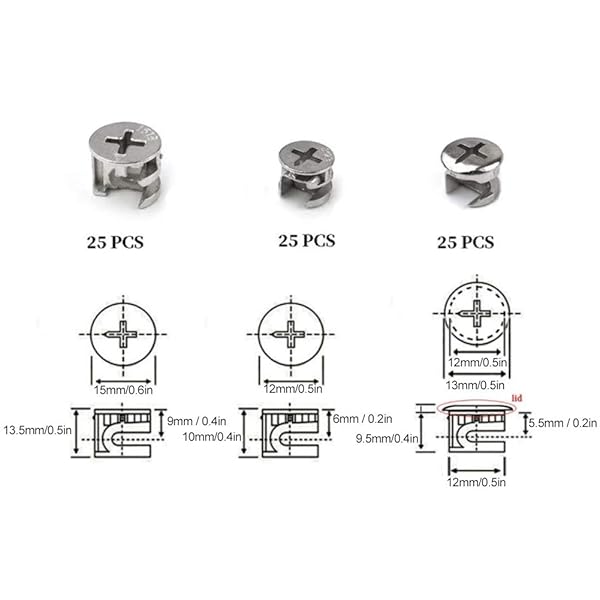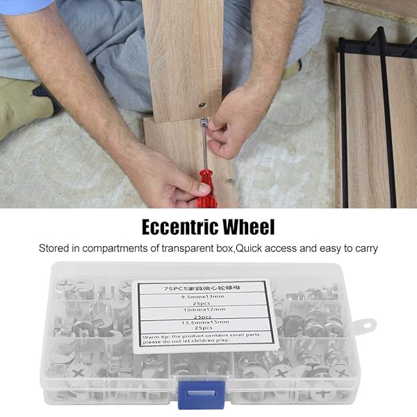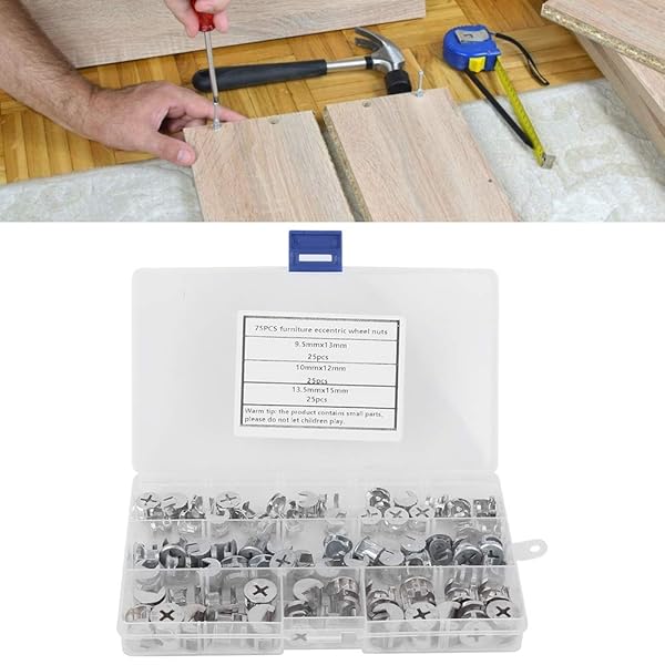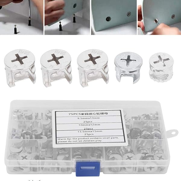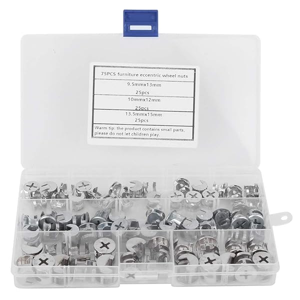 * 75pcs Cam Lock Fittings Cam Nut Furniture Eccentric Wheel Nut Set 3-in-1 Connector Fastener, Screws: excellent material: this cam nut is made of high quality carbon steel material * Not easy to be worn * Non-toxic and odorless * Size: There are 3 sizes of this cam nut: Approx * 9.5 x 13 mm / 0.4 x 0.5 inches