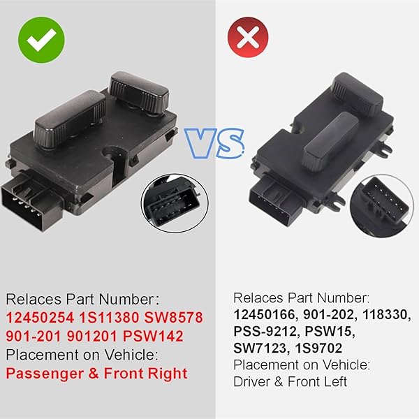- 8-Way Front Right Passenger Side Power Seat Switch Compatible with 1999-2007 Cadillac Escalade Chevy Avalanche Silverado Suburban Tahoe GMC Sierra Yukon Seat Control Switch Replaces 901-201 12450254 with reliable performance and quality- Direct Replacement - This power seat switch is a direct-fit replacement electrically operated switch that replaces damaged OE units restoring door seat function, 12 pins terminal connector.- Quality Assurance - All of the switches are made