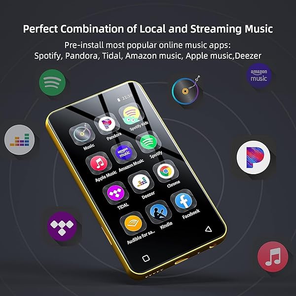 * 80GB MP3 Player with Bluetooth and WiFi, MP4 MP3 Player with Spotify,Spotify Kids4" Full Touch Screen with Pandora, Music Player with AudibleAndroid MP3 with Speaker (Gold_Black): combination of local and streaming music: innioasis g1 is not only a local mp3 player with bluetooth * But also a streaming music player * The device comes pre-installed with many of the most popular online music Apps * Including Spotify * Pandora
