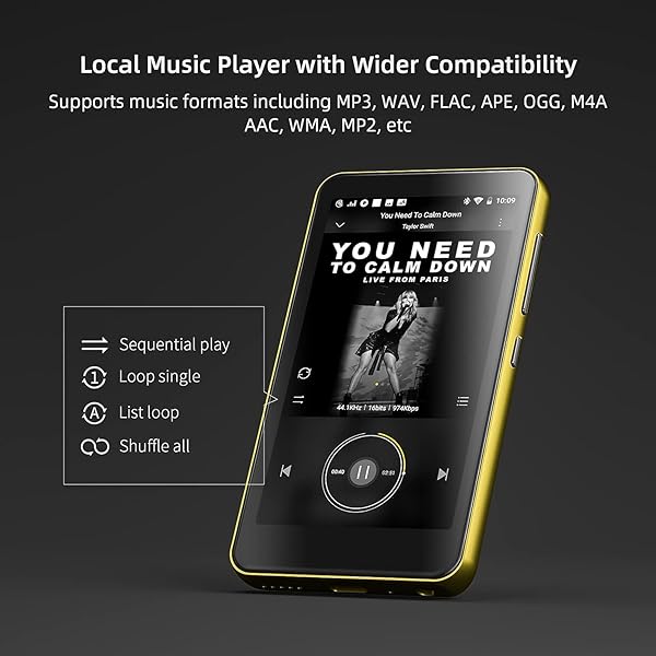"80GB Bluetooth MP3 Player with WiFi, Spotify & 4" Touch Screen - Gold/Black Music Player with Audible & Pandora"