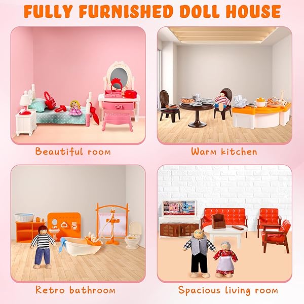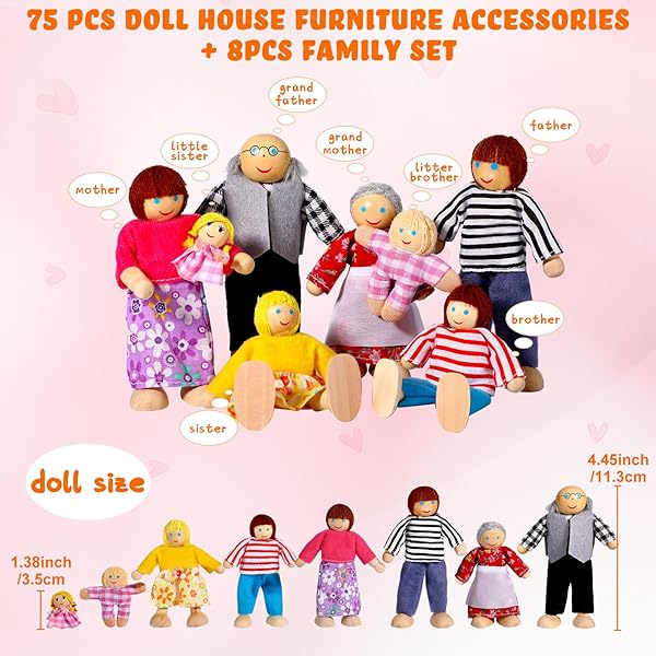 - HyDren 83 Pcs Wooden Dollhouse Furniture Set with 8 Dolls Flexible Family Dolls and Fully Furnished Kitchen Living Room Bathroom Bedroom Dining Room Role Play Toys Birthday Gift for Girl Boy offers reliable performance and quality