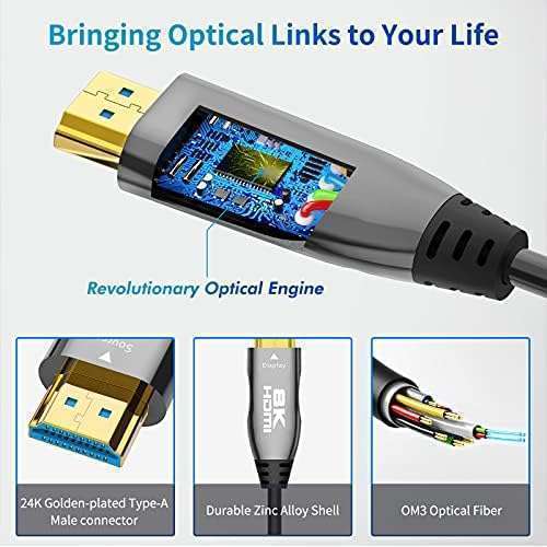 8K Fiber HDMI Cable 30ft - DELONG HDMI 2.1 for PS5, Xbox, RTX 3080/3090, 48Gbps, eARC, 8K@60Hz, 4K@120Hz - Ultimate Gaming Experience