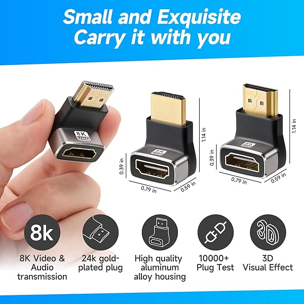 * 8K 90 Degree HDMI 2.1 Adapter 4 Pack, (Up and Down) Right Angle HDMI Male to Female HDMI L-Shaped Connector Extender Support 8K@60Hz,4K@120Hz for Google Chrome Cast, Roku Stick, Wall TV, Laptop and PC: 8k hdmi 2.1 adapter * HDMI adapter features the latest ABS material and premium aluminum shells * Gold Plated Connectors and tested for more than 10,000+ times * Togconn HDMI male to female adapter to connect devices at a resolution of up to 8K@ 60Hz and 4K@ 120Hz * Backward compatible 2K and