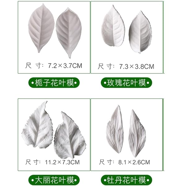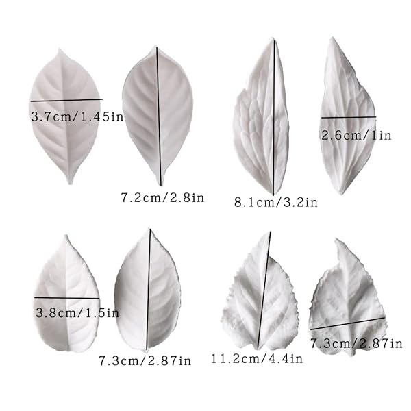 * KALAIEN 8Pcs Sugar Paste Leaf Veiners Fontant Mold Fondant Silicone Leaf Rose/Peony/Lily 3D Craft Tool: material: food grade silicone * Color:white * Package Included: 8 x Silicone Leaf Molds * Material: The fondant molds are made of food grade silicone material * Non-stick surface,flexible