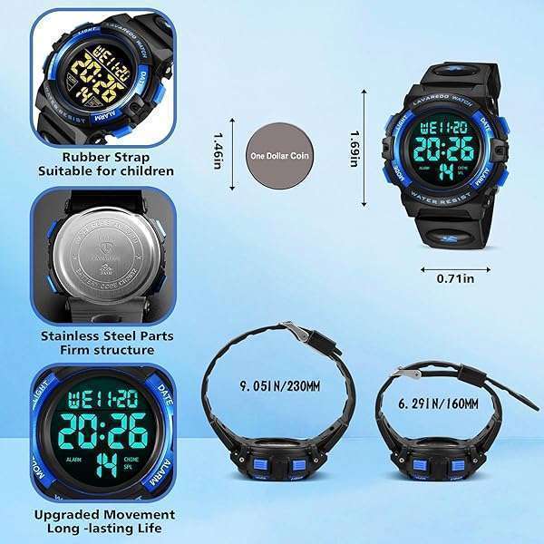- A ALPHA Boys Watch, Digital Sport Outdoor Multifunctional Chronograph LED 50 M Waterproof Alarm Calendar Analog Watch for 3-15 Year Old Boys, Rubber Band: reliable performance and quality- Multifunctional Kids Watch: Our digital watch not only- Comfortable and Easy Adjustable Strap: Our kids- Wear-resistant and anti-breaking: Still worried about- Funny Gifts: With fashionable appearance and