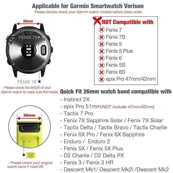 - Abanen Air-holes Silicone Quick Fit Watch Band for Garmin Fenix 8 51mm / epix Pro 51mm / Enduro / Instinct 2X / Instinct 3 50mm, Soft Sport Wrist Strap with Fold-over Magnetic Closure for Fenix 7X/...- Compatible Models - Compatible with Garmin Fenix 7X Sapphire Solar / Fenix 7X Solar, Enduro / Enduro 2, epix Pro 51mm,Instinct 2X, Tactic 7 Pro , Fenix 6X Pro / Fenix 6X Sapphire / Fenix 6X Solar,F...