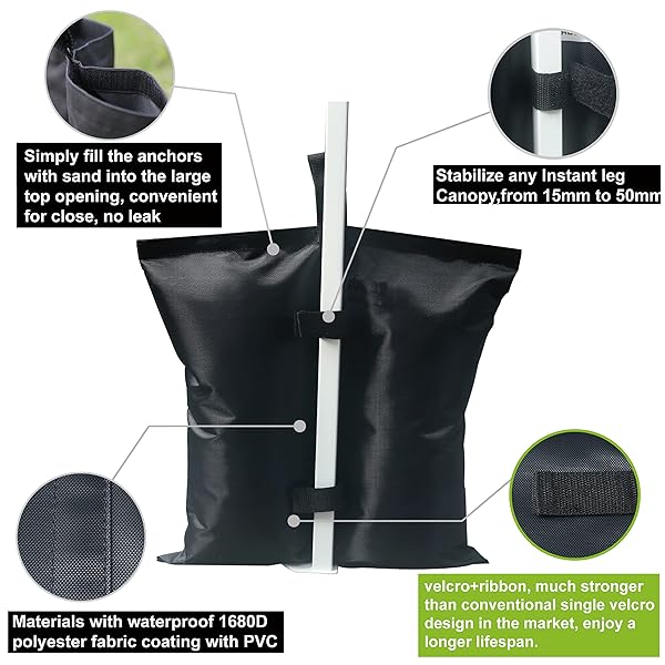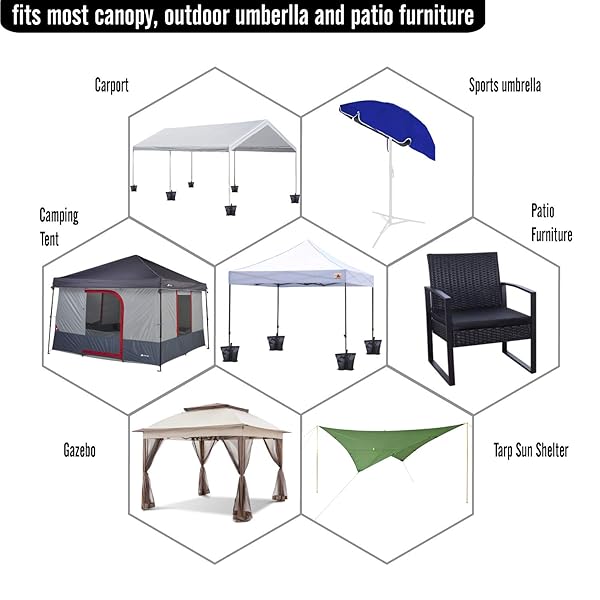 - ABCCANOPY Canopy Weights 120 LBS Gazebo Tent Sand Bags,4pcs-Pack (Black) offers reliable performance and quality- Multiple Versatile Uses: Perfect for securing tents, gazebos, camping shelters, sports umbrellas, and trampolines, these weight bags fit leg sizes ranging from 15mm to 50mm. A must-have for outdoor enthusiasts and event organizers