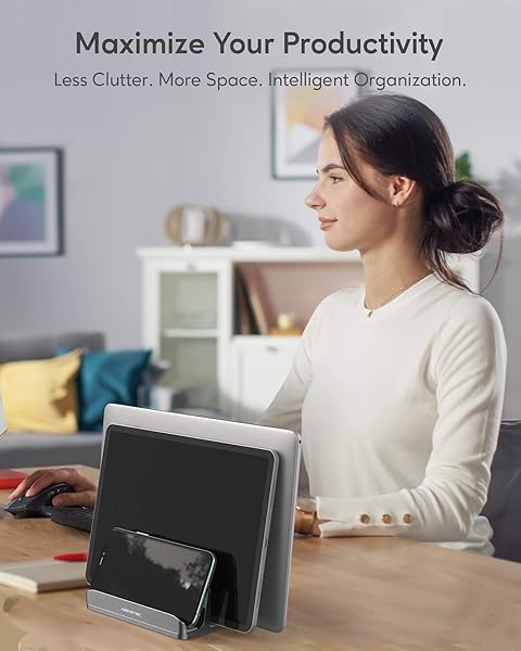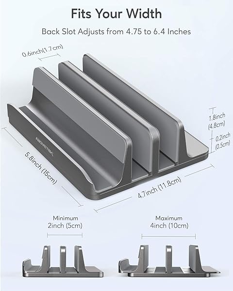 * AboveTEK Vertical Laptop Stand, 3 Slots Aluminum Desk Laptop Holder & Laptop Docking Station Stand for MacBook, Tablet, Phone - Universal Fit (Up to 17.3") - Heavy Duty Polished, Anti Slide - Grey: 3-slot versatility: abovetek vertical laptop stand 3 slot design accommodates two laptops (up to 17.3") such as macbook * Laptops * And notebooks * Along with a dock for phones * This heavy duty laptop holder is suitable for a wide range of devices