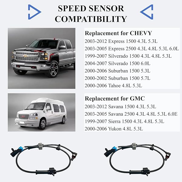 - ABS Sensor Front Left Right Compatible for Chevy Silverado/Express/Suburban/Tahoe & GMC Sierra/Savana/Yukon XL & Cadillac Escalade 4.3L 4.8L 5.3L 5.7L 6.0L ABS Wheel Speed Sensor Replace#19181873 with reliable performance and quality- Direct Replacement - This ABS Wheel Speed Sensor is designed to match OE units in fit, form, and function for peak performance, 2 pins terminal connector for plug and play design, easy to install, no wire splicing necessary, direct replacement for a