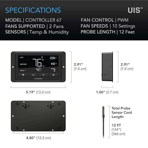 - AC Infinity Controller 67, Smart Bluetooth Fan Controller with Temperature, Humidity, Schedules, Grow Cycles, Dynamic Speed Programming for CLOUDLINE Airlift Fans Cooling and Ventilation: reliable performance and quality- A digital controller designed to equip AC Infinity- Dynamically adjusts fan speed based on temperature and- Programming includes auto triggers, timers, cycles,- Connect with our app via Bluetooth to unlock advance