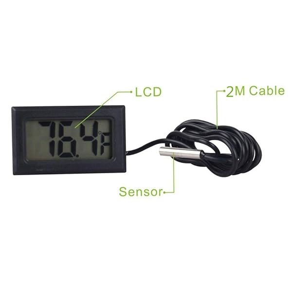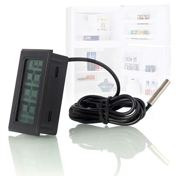 - ACEIRMC Black Digital LCD Thermometer Temperature Monitor with External Probe for Fridge Freezer Refrigerator Aquarium (Fahrenheit) (6pcs) with reliable performance and quality- Great accurate mini digital thermometers. Reads-out in Fahrenheit degrees- The LCD display thermostat is small so takes up very little space- The LCD Display Thermometer is moisture resistant and not affected by the environment, which will give accurate reading and display. 1 meter wire probe