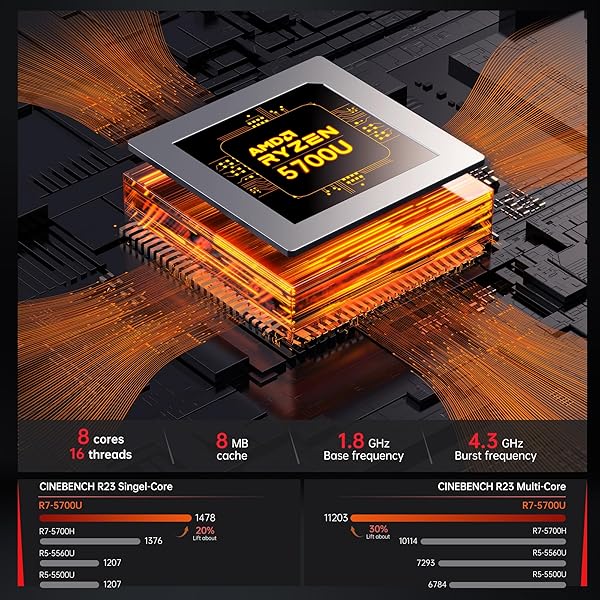 - ACEMAGICIAN Kron Mini K1 Mini PC, Ryzen 7 7730U(Upgraded 5825U/7430U), 16GB DDR4 512GB SSD Mini Computers(up to 4.5Ghz), Light Gaming Desktop 4K Triple Display Mini Desktop Bluetooth/WiFi6/Office with reliable performance and quality- [AMD RYZEN 7 7730U PROCESSOR] ACEMAGICIAN Micro PC is equipped with AMD Ryzen 7 7730U processor (8C/16T, 16M Cache, up to 4.5GHz). Compared with AMD Ryzen 5(7430U/5600U/5500U), K1 MINI PC 7730U CPU performance +35%, GPU +38%, more powerful performanc