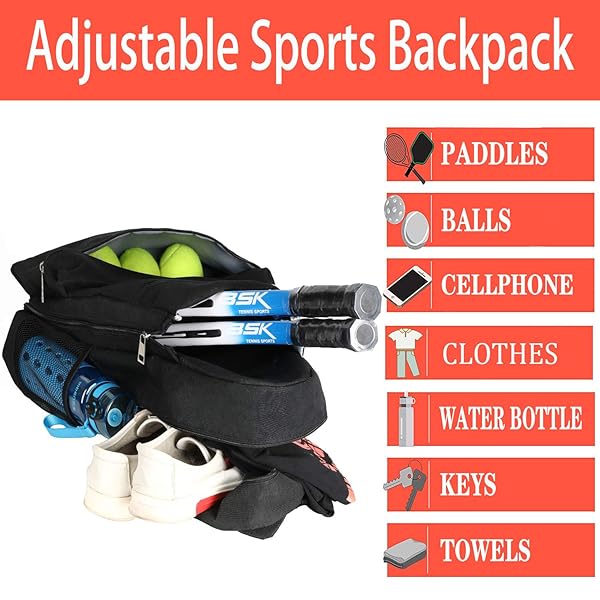 * ACOSEN Tennis Bag Tennis Backpack - Large Tennis Bags for Women and Men to Hold Tennis Racket,Pickleball Paddles, Badminton Racquet, Squash Racquet,Balls and Other Accessories (Black): perfect tennis bag: acosen tennis backpack have 5 pockets to hold all your tennis necessities and gear to keep organized * Which is convenient for you to carry and keep your tennis rackets safe * Also 1 large water bottle pocket on both sides with elastic band top to securely hold large sports bottles * SIZE