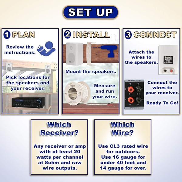- Acoustic Audio by Goldwood AA351W 2 Way High Performance Indoor Outdoor 500W Speakers with Powerful Bass (1 Pair, White) offers reliable performance and quality- OUTDOOR MOUNTABLE WIRED SPEAKERS - Traditional passive speaker design, simply drive power from your amplifier or receiver. Full Range sound coverage with 2-way tweeter and woofer configuration