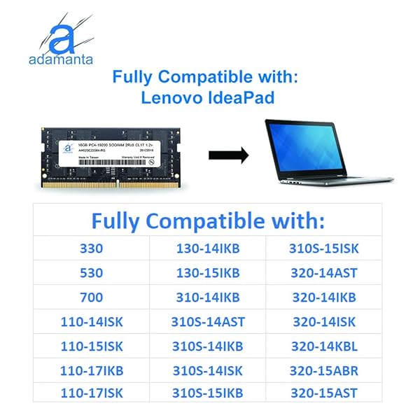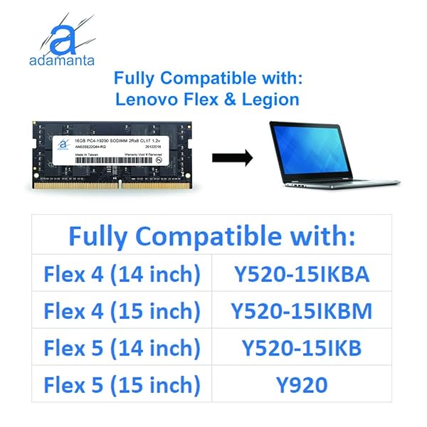 - Adamanta 16GB (1x16GB) Laptop Notebook Memory Upgrade Compatible for Lenovo Flex, Legion, IdeaCentre, IdeaPad, ThinkCentre DDR4 2400Mhz PC4-19200 SODIMM 2Rx8 CL17 1.2v RAM DRAM P/N: 4X70N24889 offers reliable performance and quality