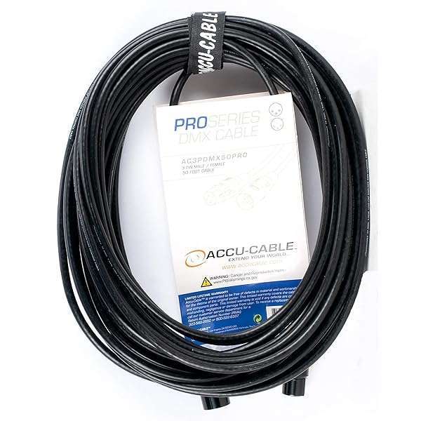 - Accu ADJ Products AC3PDMX50PRO 3-Pin DMX Cable, 50', Black offers reliable performance and quality- SHIELDED TO PREVENT INTERFERENCE: Accu Cable DMX Cables feature state of the art construction with Duofoil and Copper Braided Shielding to protect wires and prevent signal interference between controls