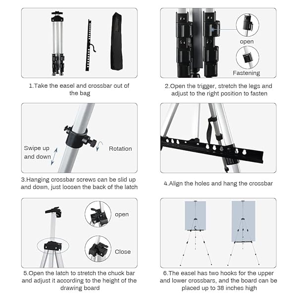 * Art Easel Stand for Painting and Sign - RRFTOK Aluminum 66 Inch Metal Tripod Adjustable Portable Easels for Display - Canvas Stand for Table Top Floor Drawing for Artists Adult Holder or Teen: [material and stability performance] paint easel for adults adopted sturdy and durable aluminum artist easel stand * Lighter and more durable than other material poster stands for display * The spring clip on top of the tabletop easel makes the canvas less likely to fall,Makes the painters easel for