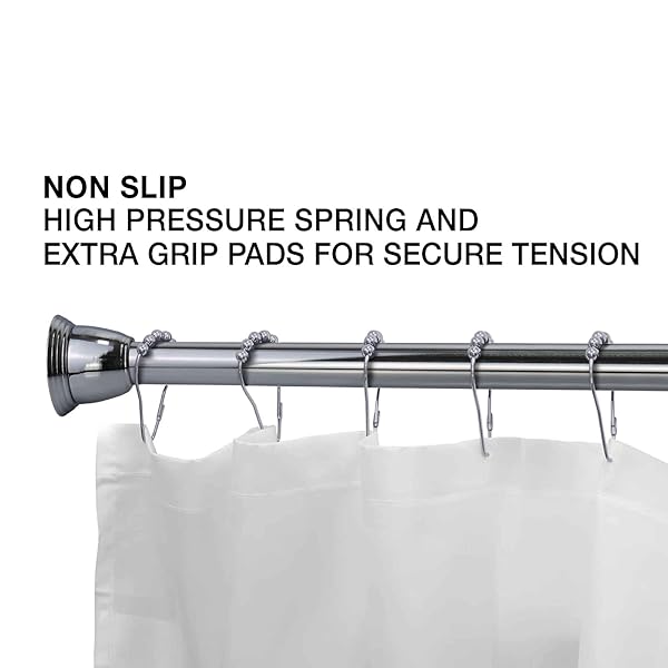 - Splash Home Eire Shower Curtain Rod, 42 to 72 Inches Steel Adjustable Tension Curtain Rod - Non-Slip, No Drilling Shower Rods for Bathroom, Chrome offers reliable performance and quality- SUPERIOR MATERIAL: This shower rod is made from 100% iron metal, non-slip, no drilling and screw required, never collapses, is anti-corrosion, and easy to clean