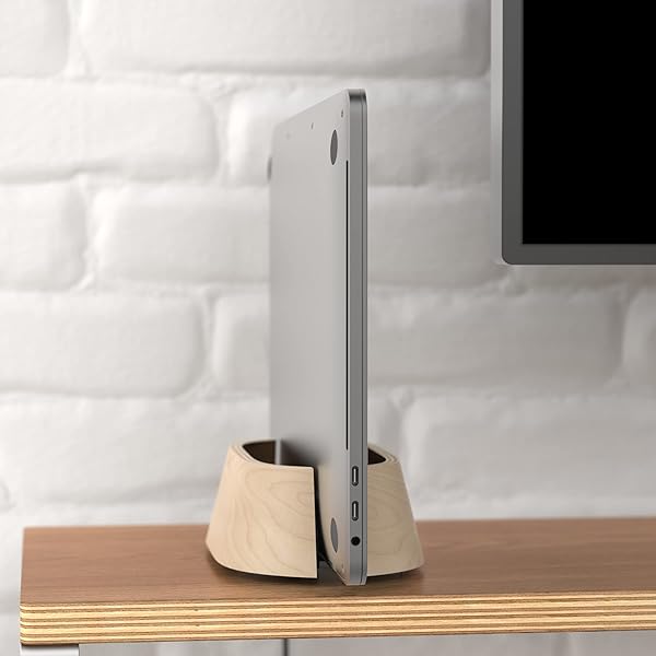 * HumanCentric Vertical Laptop Stand in Maple Wood, Upright Adjustable Holder and Dock, Laptop Vertical Stand Fits MacBook Pro and Other Laptops .5" to 1.5", Clamshell Compatible: optimize your desk with a maple wood vertical laptop stand: cradle and hold your laptop or macbook in style * Save valuable desk space and protect your device from spills with a vertical laptop holder * The adjustable width is highly compatible and fits most laptops and MacBooks from 0.5 to 1.5 inches thick * Use the