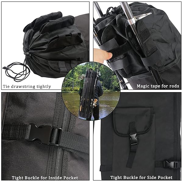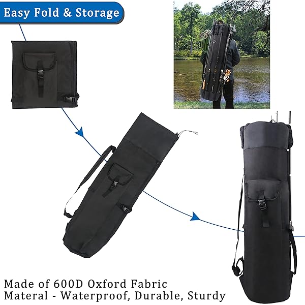 - AGOOL Fishing Rod Case Pole Bag Reel Case Large Capacity Waterproof Travel Carry Bag Fishing Gifts for Men offers reliable performance and quality- Fishing Rod Case: Holds 5 rods and reels on the outside for convenient storage and transport- Large Fishing Bag: Inside measures 48"L x 14"D with side pocket to hold tackle and other gear- Durable Fishing Pole Case: Made of heavy-duty 600D Oxford fabric with waterproof reverse side