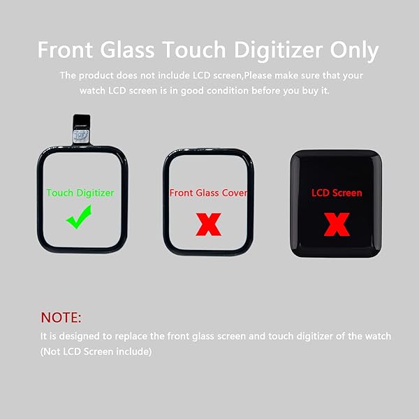- Agzssl Front Screen Replacement for Apple Watch Series 5/SE/SE2 Glass Lens Touch Digitizer Repair Kit with Tools and Instructions (No LCD Screen) 40mm provides reliable performance and quality- Get Your Watch Ticking Again: Our touch digitizer replacement screen made with high quality clarity premium glass,with an ion-infused oleophobic coating,much thicker than other,wear-resistant and d...