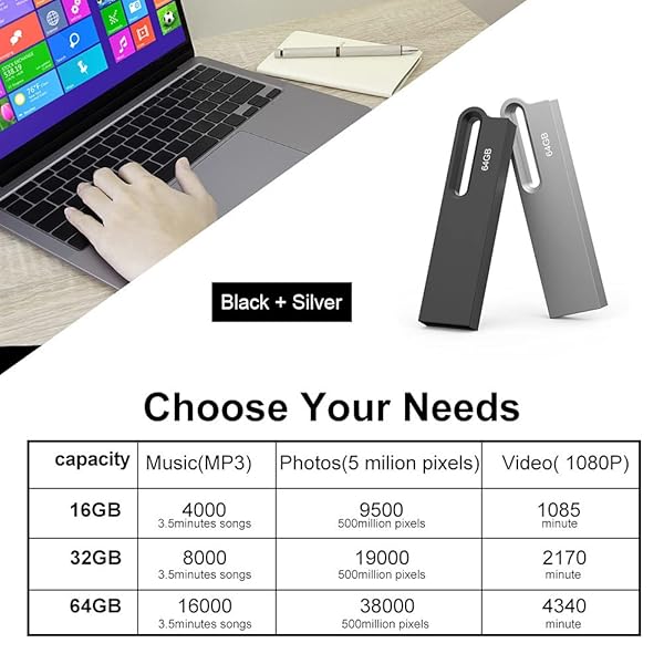 - Aiibe 64GB Flash Drive 2 Pack Metal USB Drive Thumb Drive 64 GB USB 2.0 Memory Stick Waterproof USB Flash Drive Portable Jump Drive Zip Drives with Keychain (64G, 2 Colors: Black Silver) offers reliable performance and quality- Large Data Storage Capacity: This 2 Pack USB 64GB Flash Drive from Aiibe is available in two models, black and silver both with 64GB of storage; 64GB flash drive with a high-speed 2.0 interface for the storage up to 16000 songs or 38000 photos