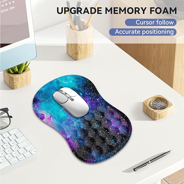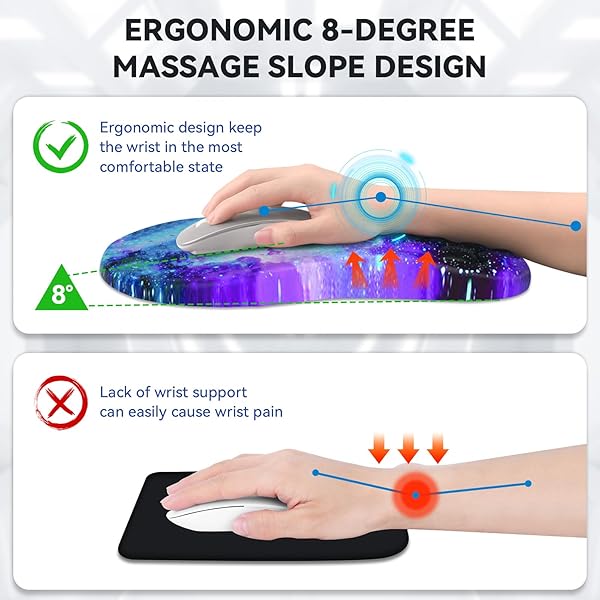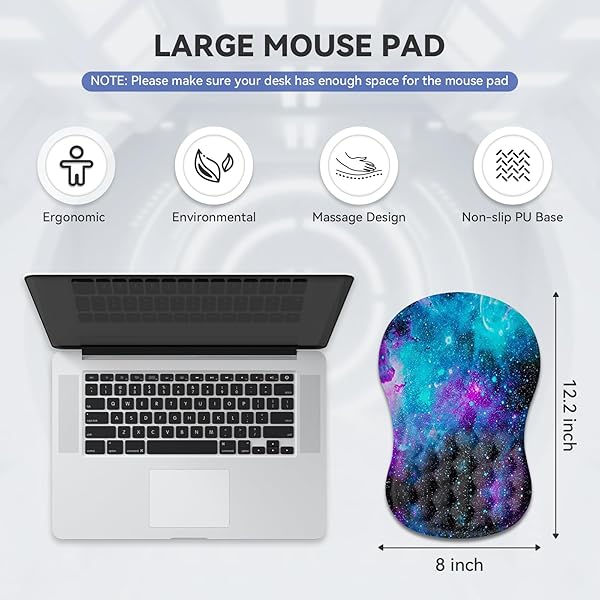 - AIMSA Upgraded Wrist Rest Support Mouse Pad, Ergonomic Mousepad Massage Memory Foam Design, Pain Relief Comfortable Wrist Cushion Mat Non-Slip PU Base for Home Office, Galaxy Nebula Universe with reliable performance and quality- Ergonomic and Massage Design - Our mouse pads feature an innovative integrated massage design that provides soothing to your wrist and hand while you work or game. In addition to the massage design, our mouse pads feature an ergonomic design that promotes