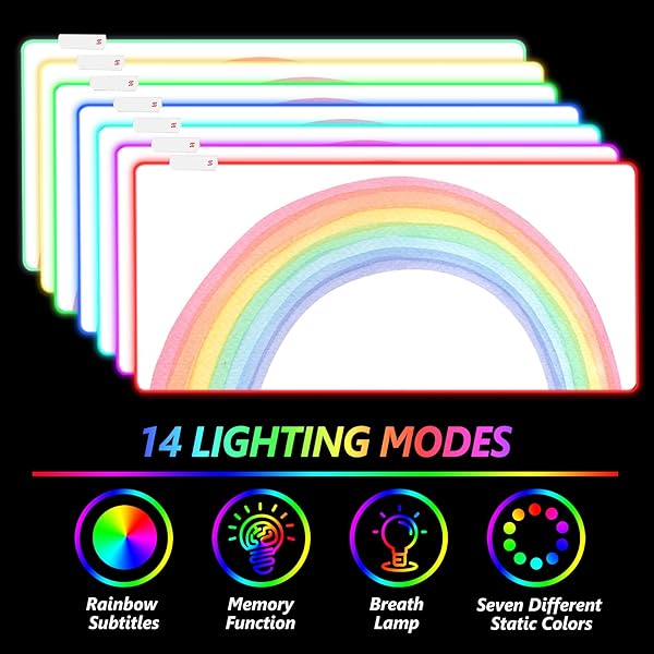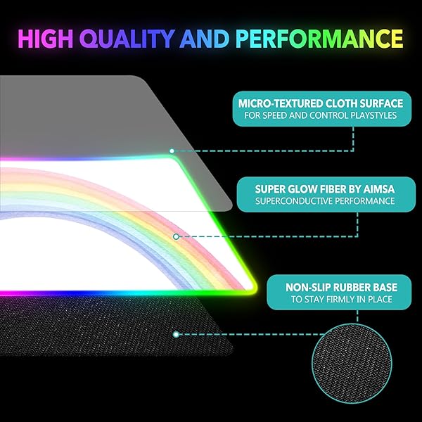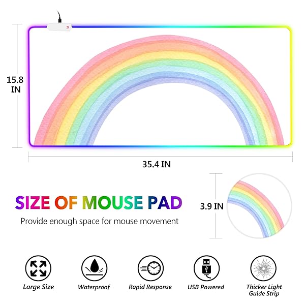 - AIMSA RGB Gaming Mouse Pad Large, Keyboard Mousepad Led Extended 35.4 x 15.8 inch Non-Slip Rubber Base with 14 Lighting Modes, Big Desk Mat Waterproof, White Rainbow with reliable performance and quality- Easy to use. This RGB mouse pad is powered by USB, plug and play, no driver required. One button, press one time to change the Lighting mode, press twice quickly to change the brightness, press and hold about 3 seconds turn on/off. The mouse pad will turn back on with lighting mo