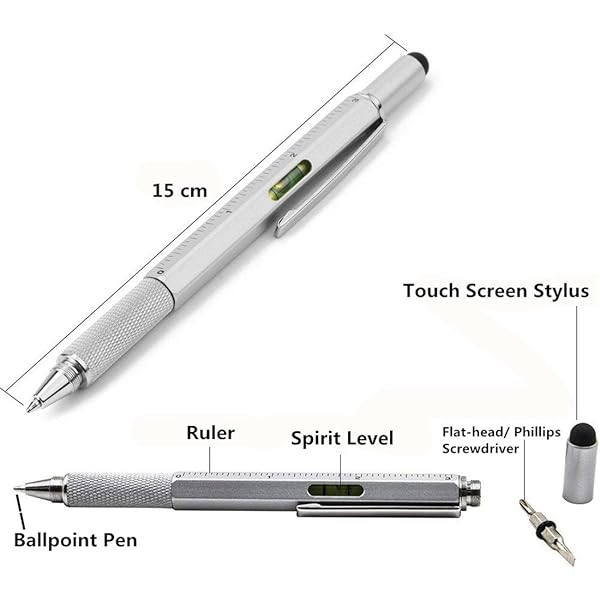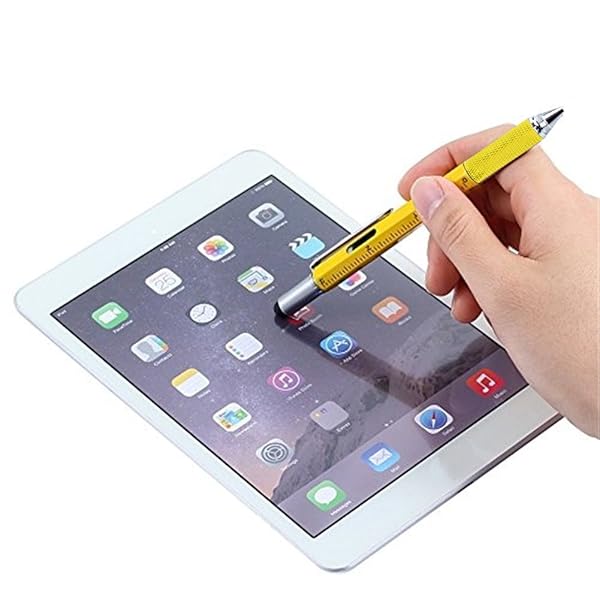 - Multifunction Tool Pen, 6 in 1 Tool with Ballpoint Pen, Touch Screen Stylus, Ruler, Spirit Level, Flat-head and Phillips Screwdriver, All-in-One Tech-Tool Pen with Ink Refills (Yellow + 2Refills): reliable performance and quality- The tech tool pen combining 6 very handy functions: A- Twist action pen, write fluently, durable, smart and- 3 colors pen shell for your choice. The multifunction- Unique design, a valuable pen you worth having for