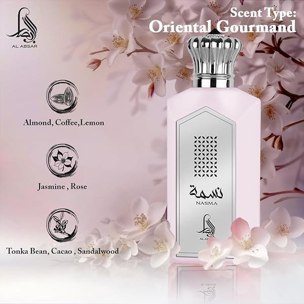 * Al Absar Nasma Perfume 100ml: enchanting fragrance: immerse yourself in the alluring scent of al absar nasma perfume * A captivating blend of floral and woody notes that leaves a lasting impression * LONG-LASTING ELEGANCE: Our perfume boasts a long-lasting formula * Ensuring you radiate sophistication and charm throughout the day and night * PREMIUM INGREDIENTS: Carefully crafted with high-quality ingredients