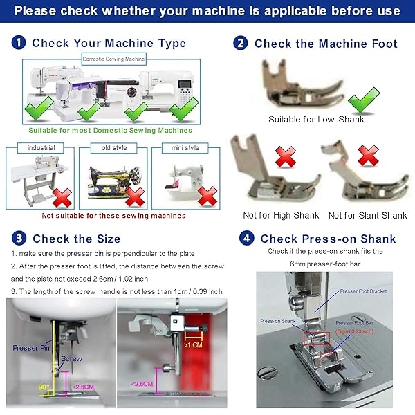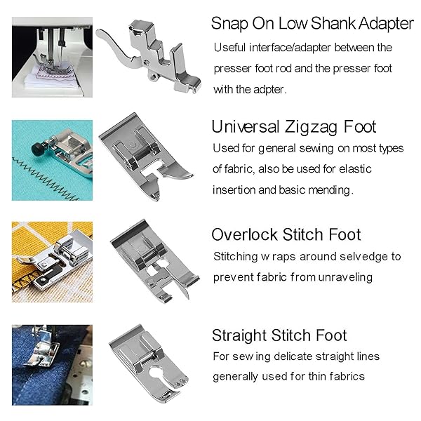 * ALAMSCN 14pcs Presser Feet Set Low Shank Adapter Universal Presser Foot Holder for Brother Singer Janome Babylock Kenmore Sewing Machine Use: 14pcs sewing machine presser foot set: different styles * Can be applied for most kinds of sewing machines * Enough quantity and various styles can satisfy your different sewing needs * Expand your possibilities of sewing and impress your family with beautiful sewing crafts * Can also be a practical gifts for your friends and family who are sewing