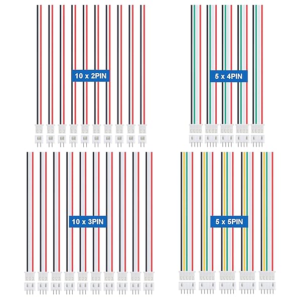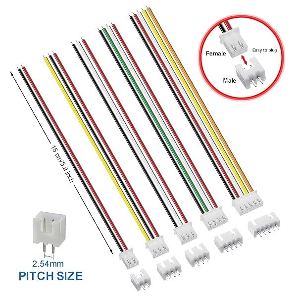 * ALAMSCN 30 Pairs JST-XH Connector Kit, XH 2.54mm 2/3/4/5 Pin Header Male and Female Connectors Plug Adapter with Flat Wire Cable 150mm 24AWG Compatible with JST XH: quantity: 10 x 2pin female connector with cable + 10 x 2pin male socket * 10 x 3pin female connector with cable + 10 x 3pin male socket * 5 x 4pin female connector with cable + 5 x 4pin male socket * 5 x 5pin female connector with cable + 5 x 5pin male socket * 30pairs in total