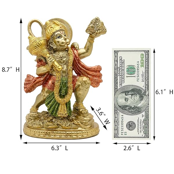 - Hindu God Lord Flying-Hanuman Statue - India Idol Murti Pooja Sculpture - Indian Gold Finish Figurine for Home Temple Mandir Decor offers reliable performance and quality- Informations: Material: Polystone, Color: Antique Gold Size: 6.3"L*3.6"W*8.7"H, Weight: 1.57 Lbs. We packed this Hindu Idol Flying Hanuman Statue in a nice box with strong polyfoam to protect It to avoid the breakage during the transportation