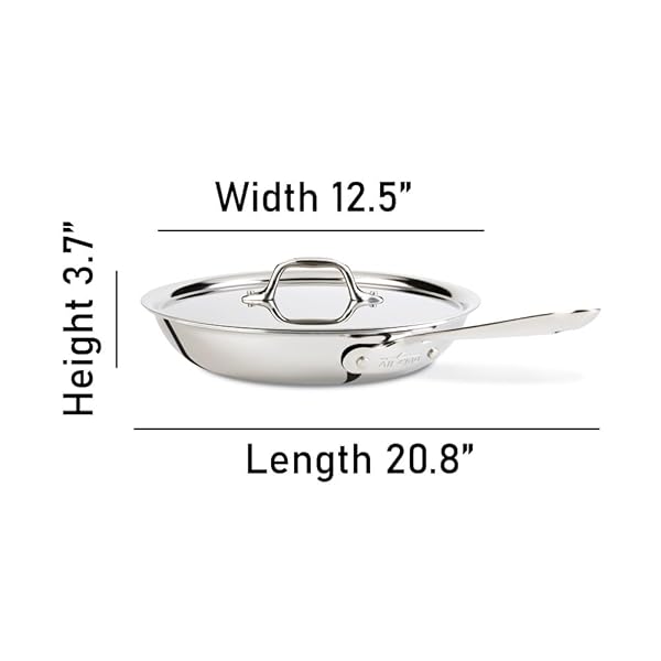 - All-Clad D3 12" Stainless Steel Frying pan W/Lid, 3-Ply Stainless Steel Pan, Induction, Oven Broiler Safe 600F Skillet, Professional Cookware, Silver offers reliable performance and quality- Premium 12-inch stainless steel fry pan with a lid, featuring a durable and versatile tri-ply construction for even heat distribution and retention, making it perfect for various cooking techniques
