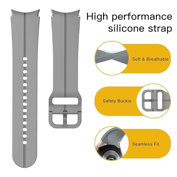 - ALMNVO 20mm Watch Band Compatible for Samsung Galaxy Watch 5 40mm 44mm/LTE 44mm/4 44mm 40mm/Galxy watch 5 Pro 45mm/4 classic 42mm 46mm for Women & Men,Adjustable silicone Sport Loop Wristband with reliable performance and quality- Widely CompatibleBand Compatible for Samsung Galaxy Watch 4 44mm 40mm/4 classic 42mm 46mm/Galxy watch 5 40mm 44mm/LTE 44mm/Galxy watch 5 Pro 45mm/Galaxy Watch 6 44mm 40mm/6 classic 43mm 47mm.- Upgrade Color ClaspWe match different colors clasp acc