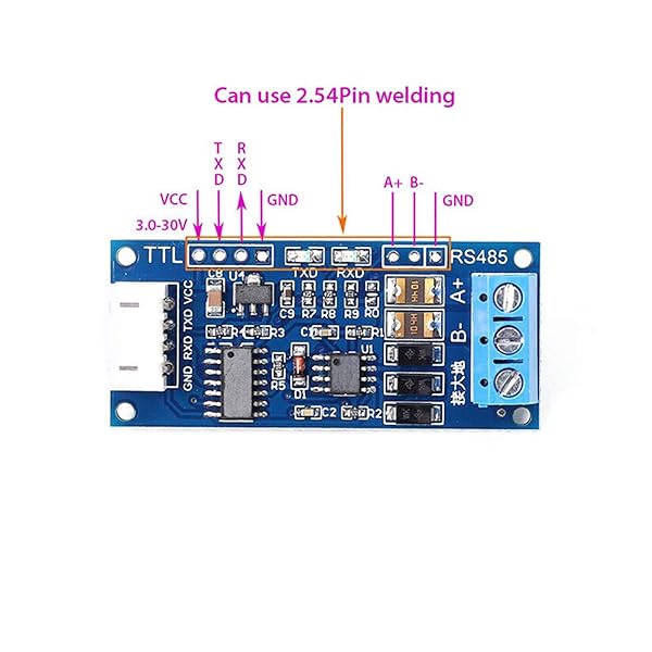 * ALMOCN 5 Pack TTL to RS485 Adapter Module 3.3V 5V 485 to TTL Signal Single Chip Serial Port Level Converter Borad with RXD, TXD Indicator: parameters: * Operating voltage range: DC 3.0V ~ 30V * Operating temperature range: -40 to +85 * Baud rate: 110 ~ 256000bps * Features: