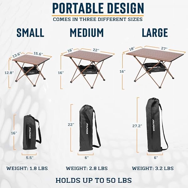 - Alpcour Portable Camping Table Lightweight, Compact Folding Side Table in a Bag with Aluminum Top & Heavy Duty Hinge for Easy Travel & Storage Great for Outdoor BBQ, Backpacking, Tailgate & More offers reliable performance and quality- THE ULTIMATE CAMPING SIDE KICK Multipurpose Folding Table Provides a Handy Surface for Grilling, Dining, Resting Bar Drinks, Playing Cards or Organizing Supplies Great for Camping, Backpacking, Tailgating, Backyard Parties & Beyond