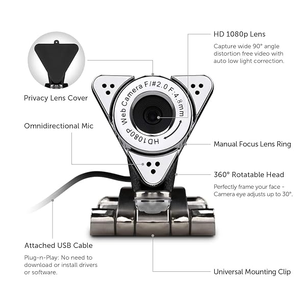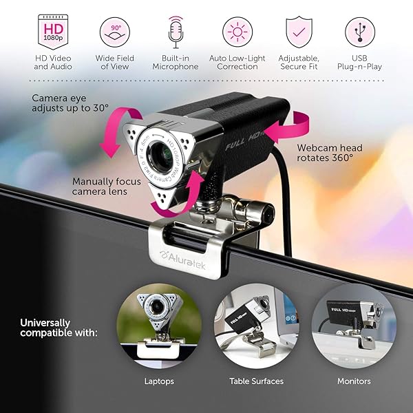 * Aluratek HD 1080P Video Webcam for PC, MAC, Desktop & Laptop, Video Call, Conference, USB: aluratek hd 1080p video webcam for desktop & laptops * Video Stream & Call * Conference * Live Chat * USB Plug and Play