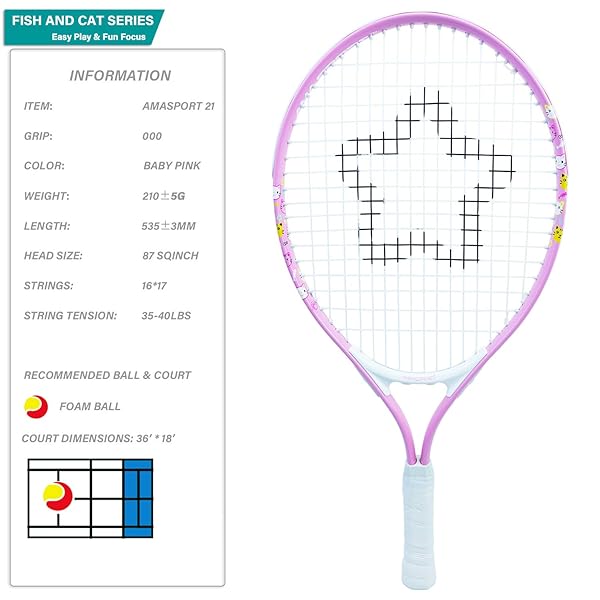 * AMA SPORT Kids Tennis Racket for Junior Toddlers Starter Kit 21" Pink for Girl with Shoulder Strap Bag (Baby Pink, 21): we want to create a better future for youth tennis * AMA SPORT introduces a quality kids tennis racket line specifically designed with a youthful & fun focus * This unique tennis racket range consists of: 17" * 25" with variety of youth colors options * BOLDLY BACK ON TOP