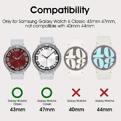 - AMANECER Bezel Ring Designed for Galaxy Watch 6 Classic 43mm 47mm, Stainless Steel Stylish Frame Loop Adhesive Cover Protector Anti Scratch for Samsung Smartwatch 2023 Relese (Silver, 43mm) with reliable performance and quality- Compatibility: Enhance the style of your Samsung Galaxy Watch 6 Classic (43mm/47mm) with this stylish, stainless steel bezel ring.- Application: Designed to perfectly fit and protect your Samsung smartwatch, this bezel ring adds a touch of elegance