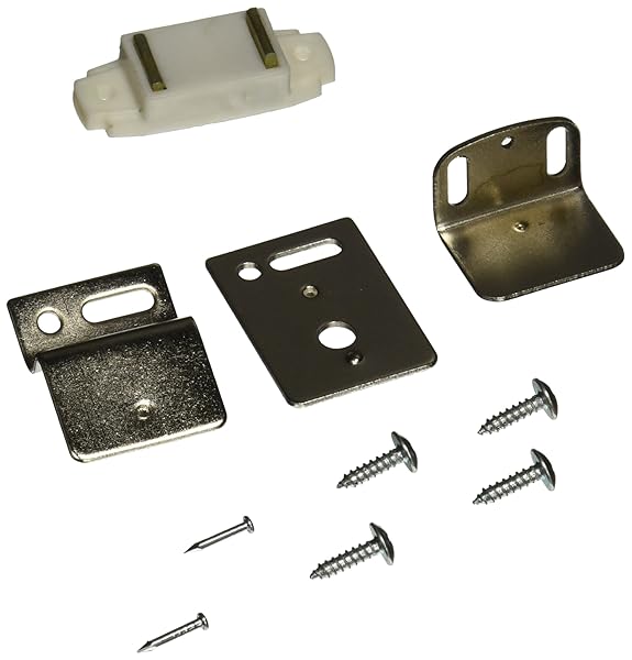- Amerock | Magnetic Cabinet Catch | White | 1-15/16 inch (49 mm) Length | 1 Pack | Door Catch | Cabinet Door Latch | Magnetic Door Latch: reliable performance and quality- 5-11 lbs. Pull Force- Finished in White- Strike Dimensions: 1-1/8 in. L x 7/8 in. W x 3/4 in. H- Includes mounting hardware: #6 Truss Head Screw x 1/2in; #15 x 1/2in Nail