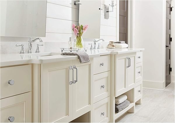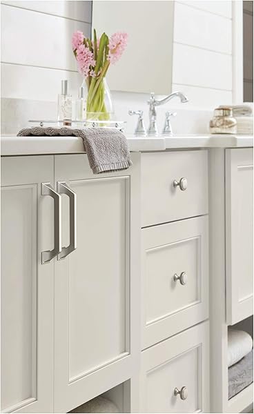 * Amerock | Cabinet Pull | Satin Nickel | 5-1/16 inch (128 mm) Center-to-Center | Exceed | 1 Pack | Drawer Pull | Cabinet Handle | Cabinet Hardware: the allison by amerock bp36882g10 exceed 5-1/16 in (128 mm) center-to-center pull is finished in satin nickel * The Exceed collection blends inviting curves with distinctive pedestal edges * Creating a composition that is as unexpected as it is timeless * Enduring and versatile * Satin nickel marries delicate brushing with a subtle warm hue to